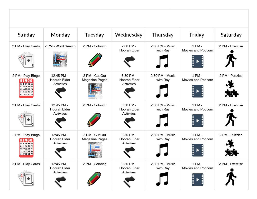 Our home collaborates with an activities director who conducts activities tailored to each residents needs. Bingo, puzzles, arts & crafts
